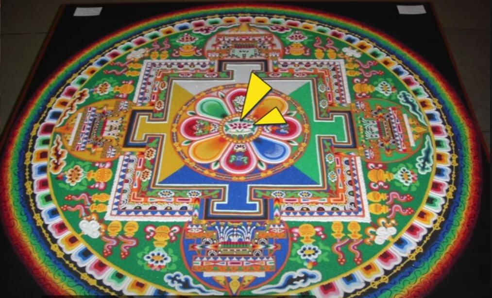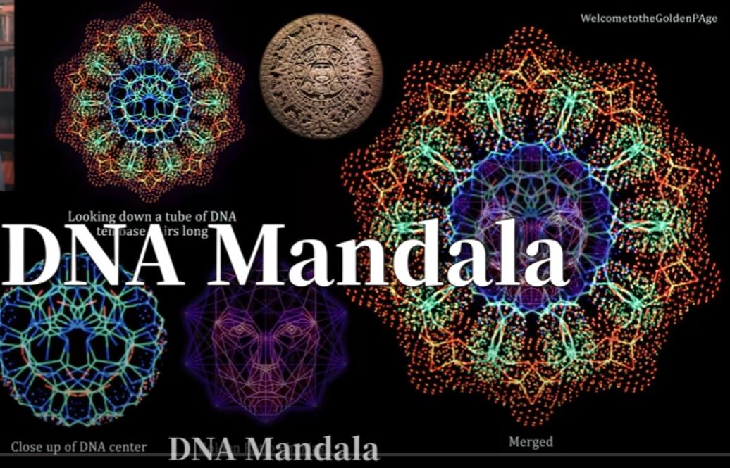 他的意思是,在藏传佛教中,有一种神秘的图形叫做曼陀罗(Mandala)。这个图形代表的就是整个宇宙,这个圆的中心,就是冈仁波齐峰所在的轴线。而这个曼陀罗的图形,又和人类的DNA结构非常相似,所以,DNA的横切面的图形又叫做DNA Mandala。