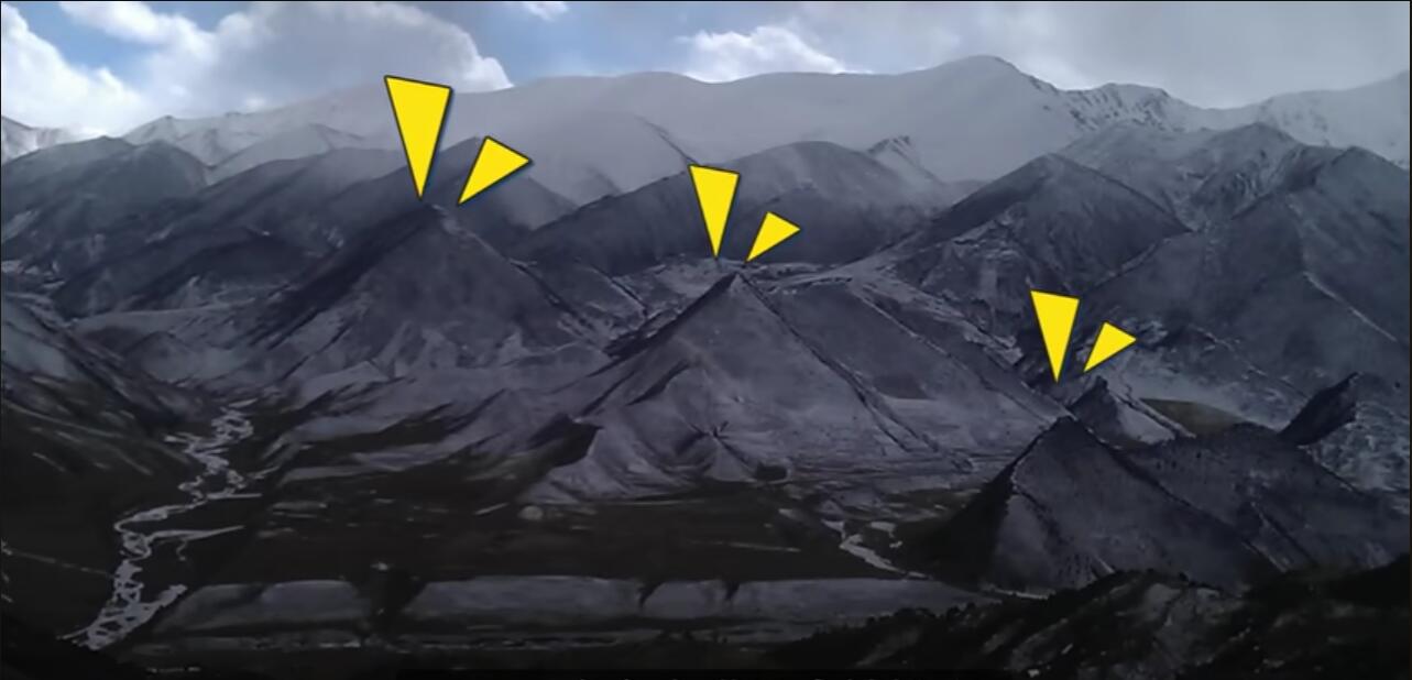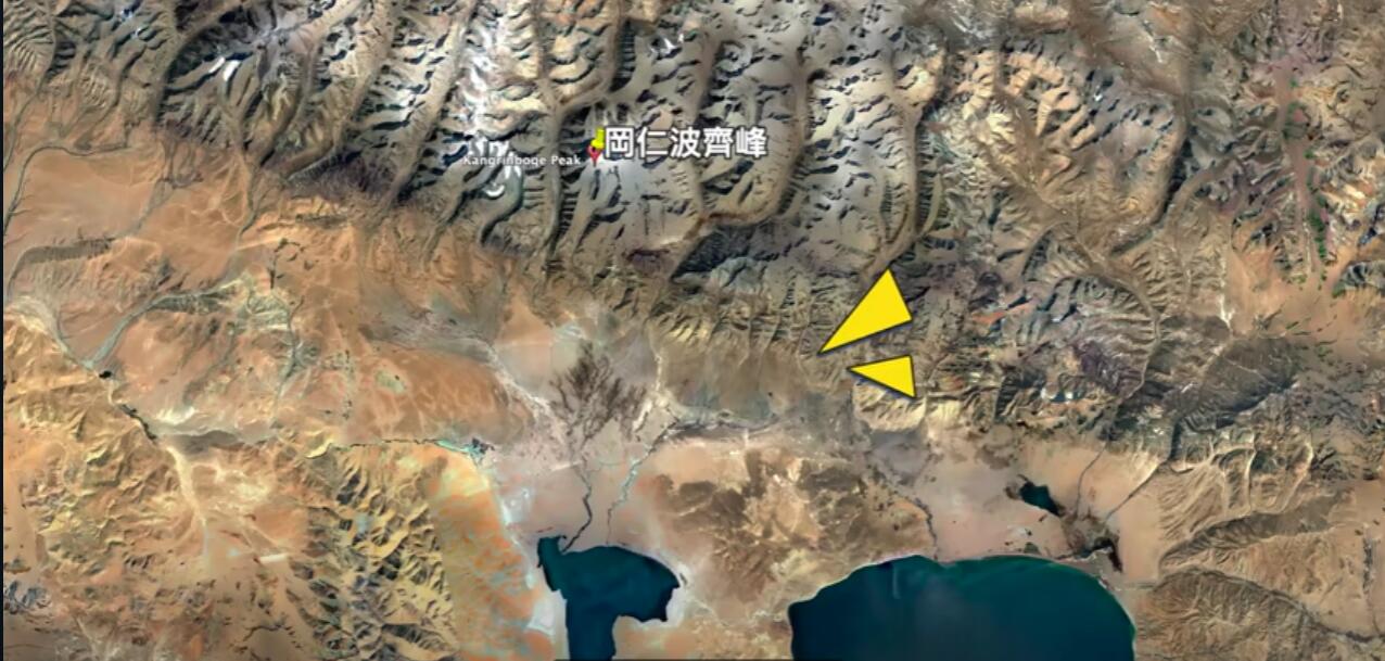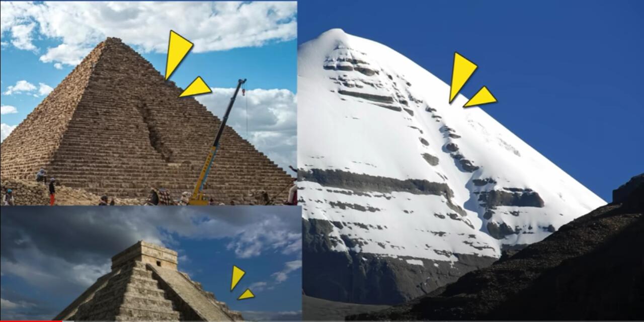 大家看,冈仁波齐峰是一层一层的,中间还有一个凹槽,这和埃及南美洲金字塔的结构都非常类似。