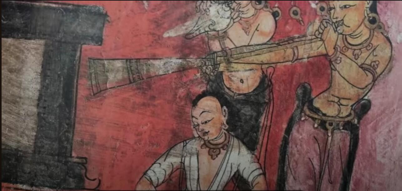 大家再看一下托林寺的古格壁画,当时的人类都是袒胸露乳,穿的非常清爽。