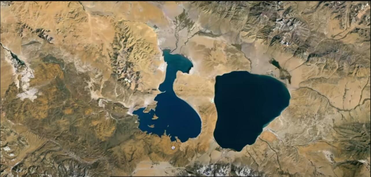 西藏阿里还有个神秘地区,就在冈仁波齐峰山下。在远古阿里的海水退去之后,就在冈仁波齐峰山下形成了两个湖。右边的叫做玛旁雍措,左边的叫做拉昂错。这两个湖也不是善类,一个被称为圣湖,另外一个在旁边的被称为鬼湖。圣湖玛旁雍措有花有草有牧羊,有88座寺庙,是一个非常巨大的蓝色透明淡水湖。