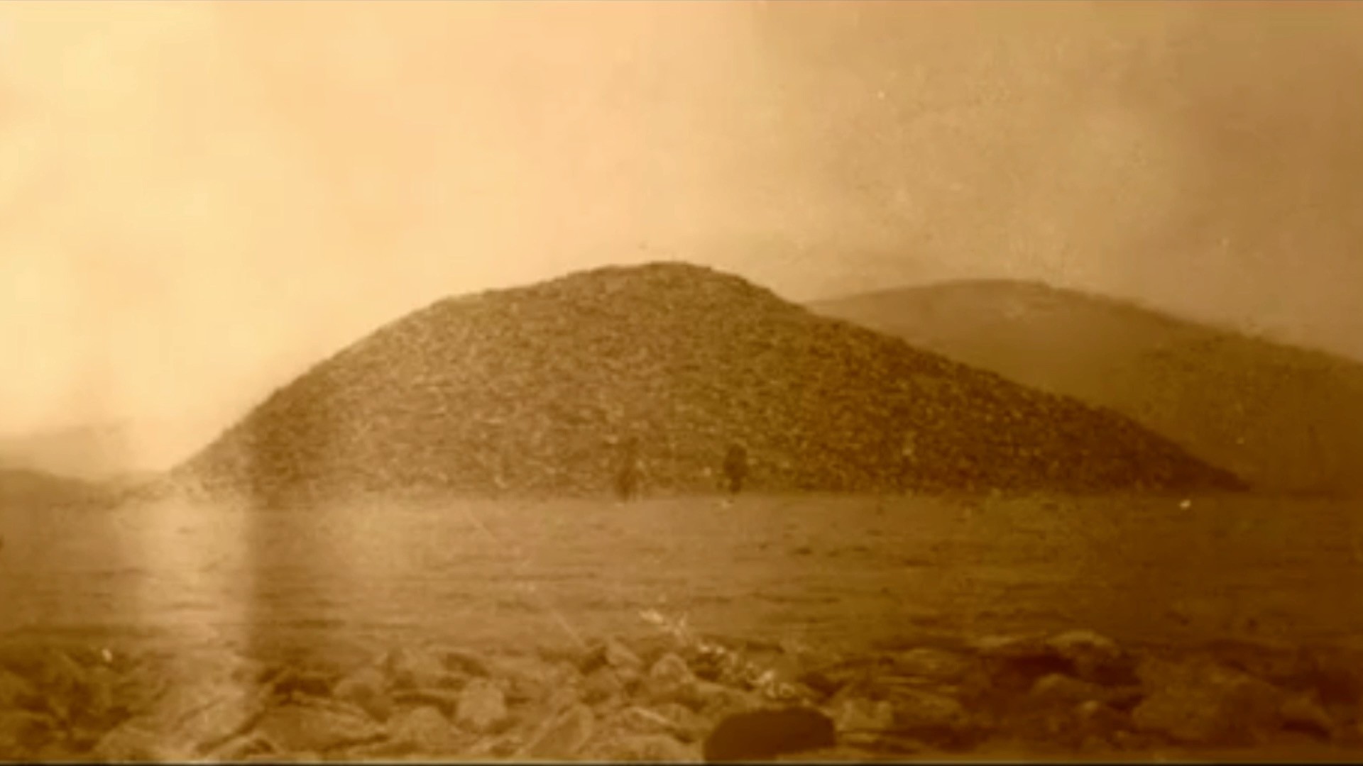 一路上牧民们讲述着草原上的一个古老传说,他们说,我们将带你去的地方有三个高大的金字塔,它们是用几百万块石片堆成的。除了三座大金字塔以外,那片草原上还有几十上百个小金字塔,这些金字塔的周边,都有石片堆成的城墙,城墙和金字塔组成一个个环形的单元。