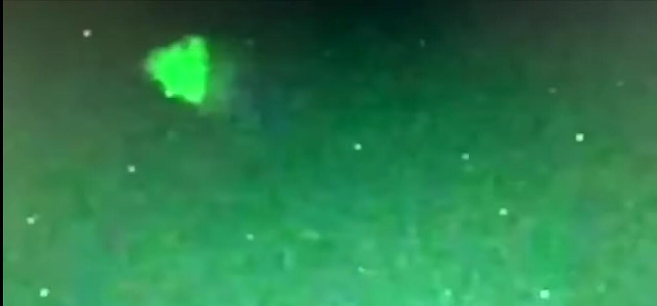 2019年6月,一艘驱逐舰上,水手用夜视仪对着天空拍摄,拍到了这样一个飞行的三角,还在发着闪光。