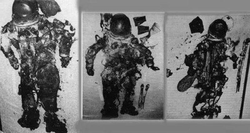 而扎菲的尸体已经完全融化在座椅上,据说营救人员为了把它弄出来,足足用了一个半小时。他至死也没有离开座椅半步,因为指挥中心在着火时告诉他要保持沟通。直到同伴打开舱门为止,可是这一刻他始终也没能等来。