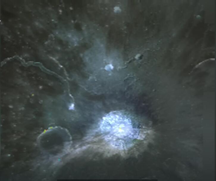 肯和霍格兰认为,这就是为什么月球上没有大气层,却能够拍出如此斑斓色彩的原因,这些玻璃能够把光解析为不同的颜色。