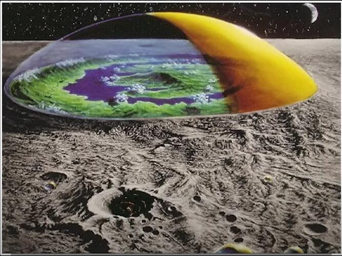 他们假想的月球玻璃罩是这个样子,几乎大到可以覆盖像洛杉矶这么大的城市。