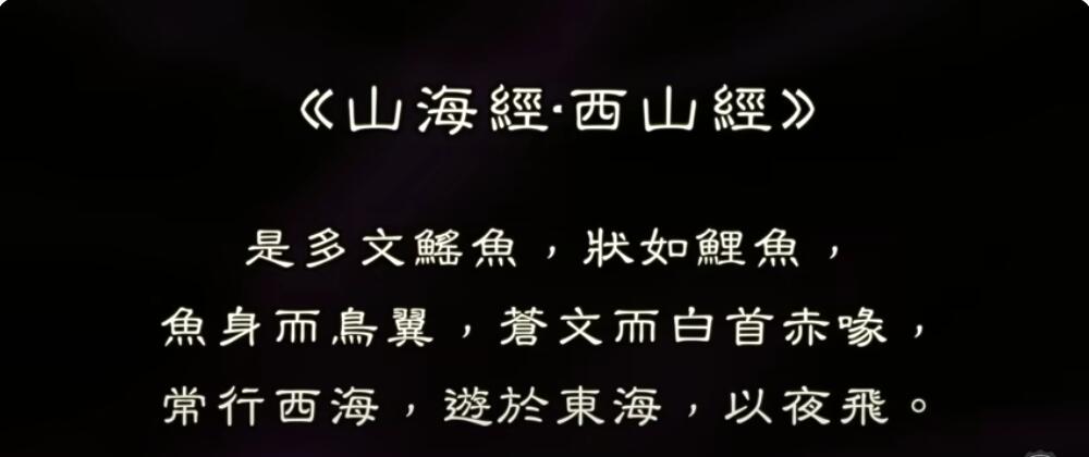 《山海经》所描述的西部世界,怎么可能会去到非洲呢?甚至还有南美洲的身影?《山海经·西山经》里有这样一段记载:有一种叫做文鳐鱼的鱼,它的形状像鲤鱼,却长有鸟的翅膀,浑身布满苍色的斑纹,它的头是白色的,嘴巴是红色的,经常从西海游到东海,最擅长的是在夜间飞行。
