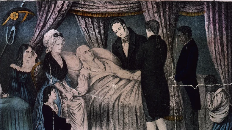 乔治·华盛顿的死因是什么?基本故事是,这位美国第一任总统于 1799 年 12 月 14 日因喉咙感染不幸去世。两天前,他外出骑马,被冻雨淋湿。回到家后,日程安排很紧凑的华盛顿直接穿着湿透的衣服去吃饭。随后,他的喉咙越来越痛,直到他卧床不起,最终于 12 月 14 日晚上去世。