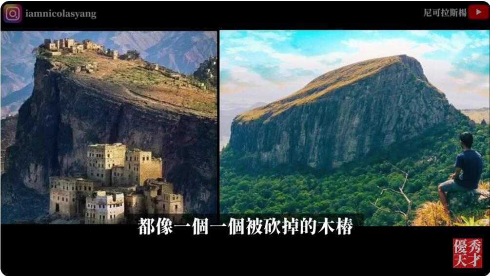 大家看一下,这些山真的非常奇怪,都像一个一个被砍掉的木桩。