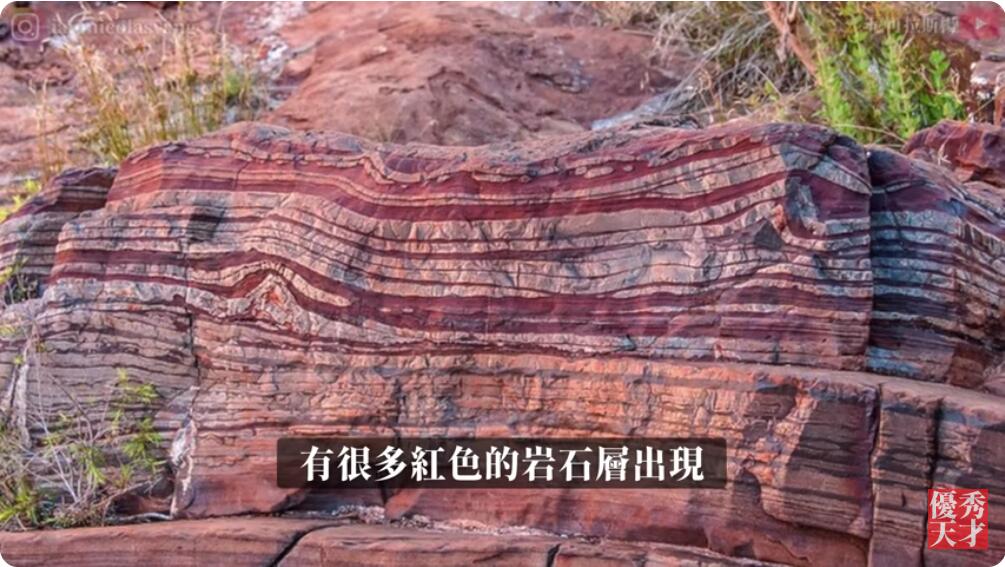 地质考古学家在距今23亿年前的地质层中,发现这一段时间的地质层,有很多红色的岩石层出现。