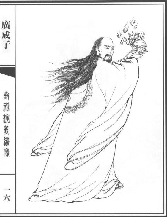 广成子是古代的一位神仙,住在河南临汝西南崆峒山的一个石洞里。黄帝听说后曾专程去拜访他,向他请教修炼道术的要诀。广成子对黄帝说,“你所治理的天下,候鸟不到迁徙的季节就飞走,草木还没黄就凋落了,我和你这样的人有什么可谈呢?”黄帝回去后三个月不理朝政,什么事都不干,然后又去见广成子,很恭敬地跪着走到广成子面前,再三叩拜求教修身的方法。广成子回答说:“修道所达到最高境界就是心中一片空漠,即看不见什么,也听不见什么。凝神静修,你的肉体必然就会十分洁净,你的心神也会非常清爽。不使你的身体劳顿,不使你的精神分散,你就可以长生。注重内心的修养,排除外界的干扰,知道过多的俗事会败坏你的真性。我能牢牢的专注于养性,永远心境平和清净无为,所以活了一千二百岁,而形体上没有一点衰老的迹象。得到我道术的可以成为君王,失去我道术的只能成为凡俗之辈。我的道将把你引向无穷之门,游于无极的原野,与日月同辉,与天地共存。凡人都将死去,而得我道的人却会长存于天地之间。