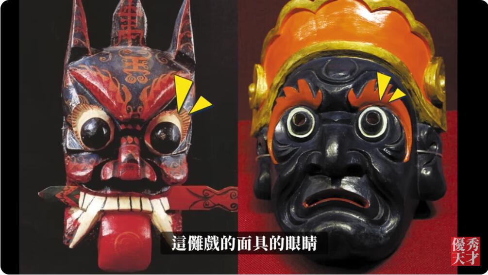 大家看,这傩戏的面具的眼睛这么大这么突出-上下俱眴。