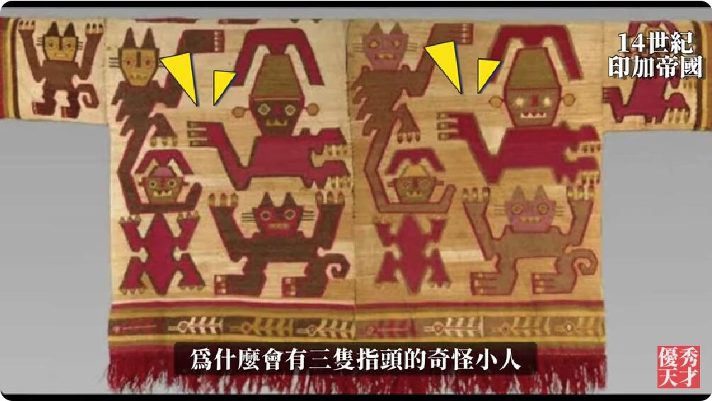 这是14世纪,印加帝国保存下来秘鲁原住民衣服。看这上面的花纹,为什么会有三只指头的奇怪小人,难道这里真的出现过外星人种?