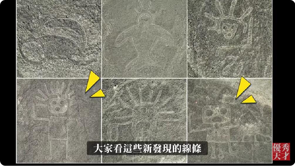 这些和以前发现的蜂鸟世界之树、大眼睛外星人的纳斯卡线条一样,都是非常巨大。长100-300米,只有在天空才能看到它们的全貌。