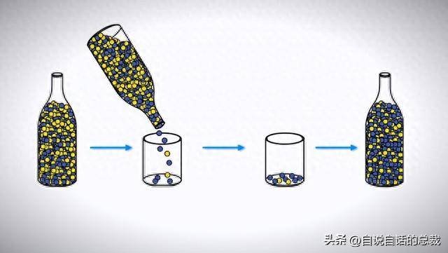 想象一下,如果有一个大瓶子,瓶子装着几百万颗黑白两种颜色的小球,这个时候,我们把小球倒1000颗出来,然后,这1000颗小球会两两配对繁殖,于是,当它们重新繁殖到80亿颗的时候,我们再去检查黑白两种颜色的比例,它一定和倒出来那1000颗小球的黑白比例相似。