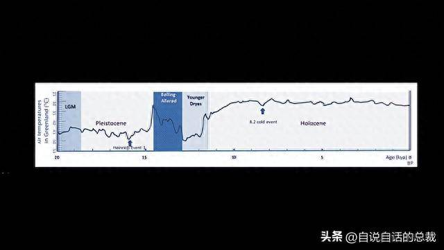 不久以后,专家们拿出了这样一张图表,这是他们从北极冰芯中截取的一小段内容,横轴代表着时间,从距今两万年前开始,纵轴代表着北极格林兰岛的气温。