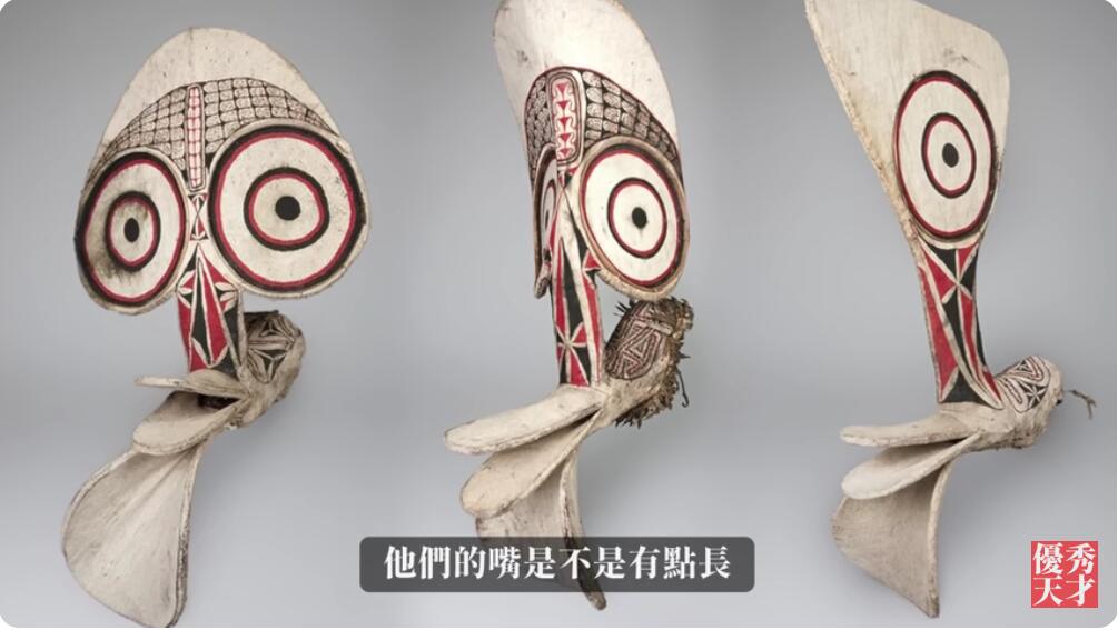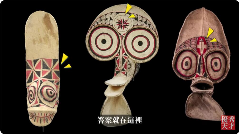 他们用木头做了一个一模一样的面具用来纪念神的样子,纪念飞行员。