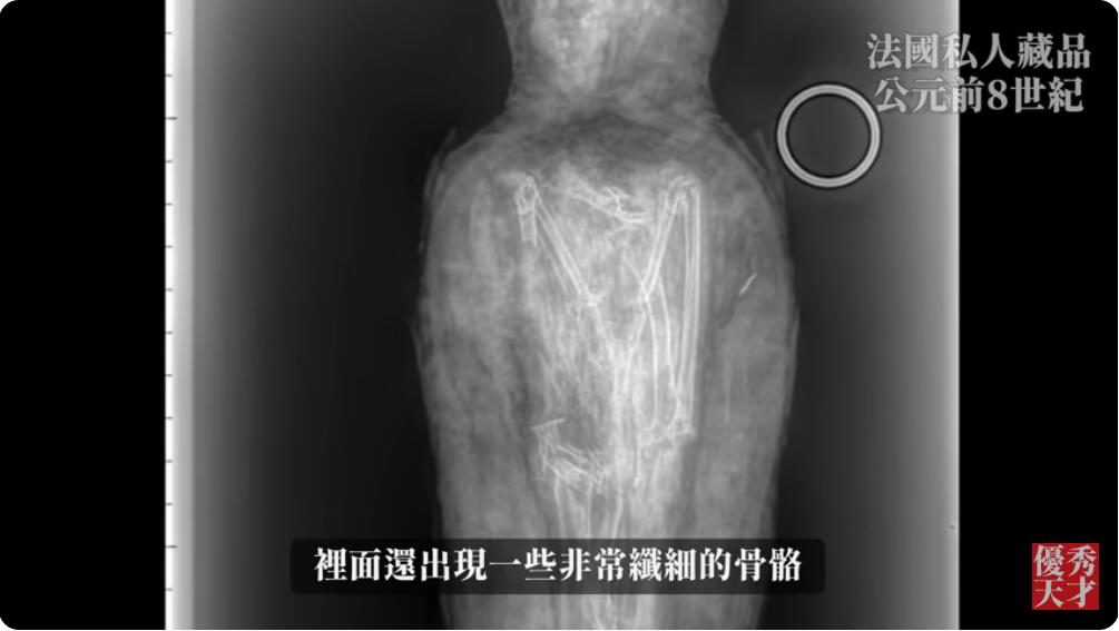 毕加索珍藏的木乃伊,身高55厘米,正面就是鸟人的大眼睛。外面是一个壳,里面还有一个小型的木乃伊。经过x光扫描,里面还出现一些非常纤细的骨骼,他们不是人类。这会不会是鸟人的幼崽?