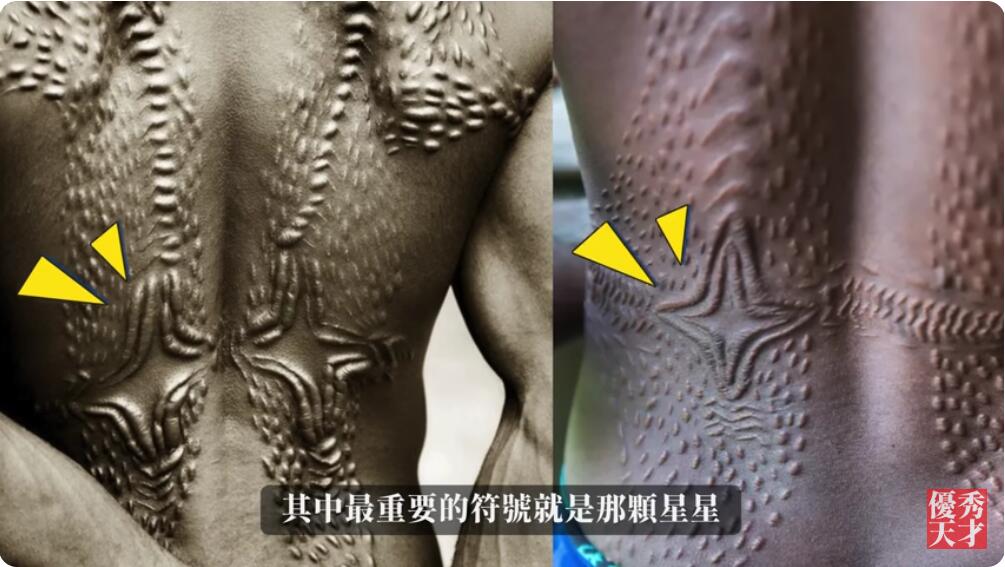 这不是我瞎说,大家看一下,巴布亚新几内亚原住民的皮肤割纹,其中最重要的符号就是那颗星星尼比鲁。这个我在尼比鲁远古证据这一文详细分析了,大家一定要看一下。