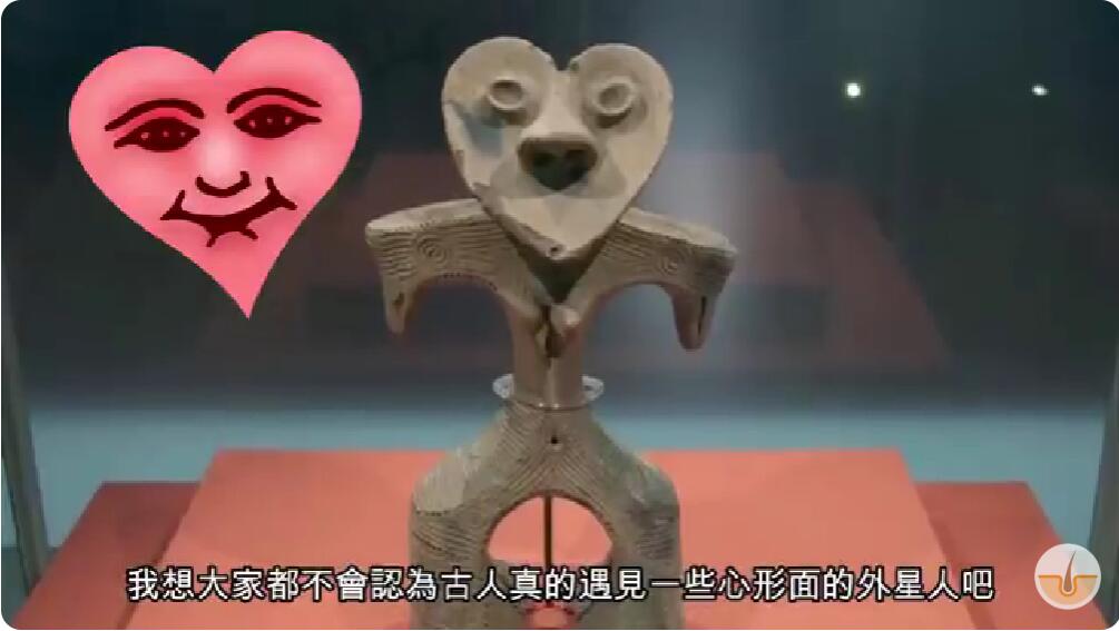 再多举一例,例如这个同属绳纹时代的心型面土偶,我想大家都不会认为古人真的遇见一些心形面的外星人吧?
