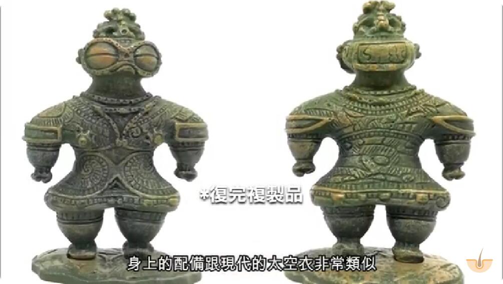 这很可能是史前的日本绳纹人曾经遇到身穿太空衣外星人,降落地球的证据,由于超时代的科技,古人误以为是神明所以为他们造像崇拜。