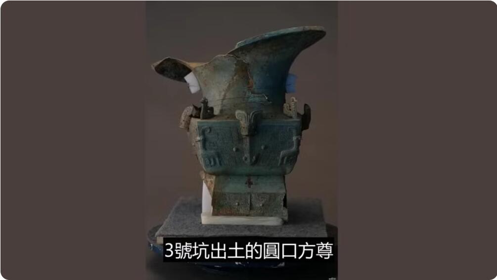 3号坑出土的圆口方尊是三星堆首次发现的商代圆口方尊,它是三星堆青铜受中原文化影响下的地域风格产物的实证。