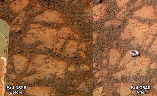 当然,NASA 总是否认新发现的异常物体是“天然岩层”。2014 年初,细心的研究人员发现了“前后”照片,证明 NASA 偶尔会“清理”他们的一些照片(和视频),事情因此变得扑朔迷离。