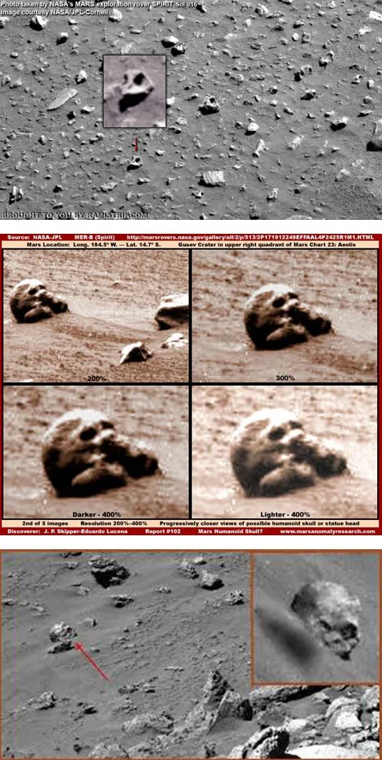 据报道,在火星表面发现了几具人类和动物头骨。以下是一些值得注意的例子。