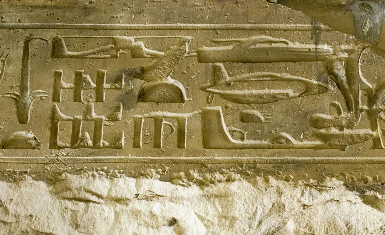 在塞提一世神庙 (Seti I) 内,您可以找到外部柱厅,在其中一个门楣上,您可以找到一系列雕刻,它们看起来非常像直升机和未来派太空飞船。直升机特别容易辨认,这引发了人们对这种东西怎么可能存在的疑问。自然,每个 UFO 爱好者或曾经技术先进的亚特兰蒂斯文明的信徒都指出这些图像是他们理论的证据。阿拜多斯雕刻展示了直升机和其他未来派车辆。