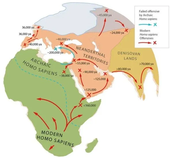 然而,此时尼安德特人已经占领了欧亚大陆最富饶的领土,这导致了两个物种之间长期的竞争。