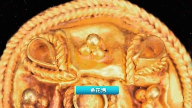 是一个纯金的半圆泡,表面用金丝焊接着圆形、心形、辫子形的立体装饰。
