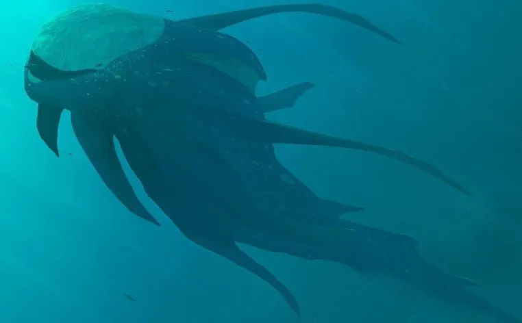 该生物从头部到躯干长 6 英尺,头部和颈部长约 18 英寸。它游得很平稳,水面没有明显的扰动。水面上方的身体部分没有波动。