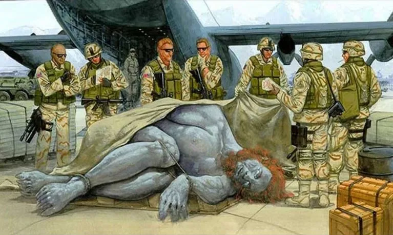 至于巨人的尸体,至少重达 500 公斤,随后被空运到当地军事基地。军方将其装上一架 Chinook 直升机,再将其运送到运输机上,从此再也没有人见过它。