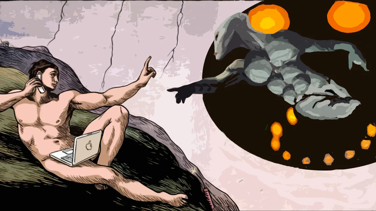 那些古代人(尼安德特人?)有些东西不符合外星人的本性。显然,他们已经想立即创造一个具有所有必要品质的人(作为朋友或仆人?),而无需任何先决条件。最终,我们的外星遗传学家意识到,不可能就这样制造出现成的人类,它必须经历一些发展阶段,并且外星文明直接干预我们的发展也是可以预料的。外星人作为“神”开始向人们传授知识、道德体系,引入了第一批禁忌(禁令)。因此,他们为他们的实验创造了可接受的条件。经过数千年,人类终于找到了自己的真实形态。