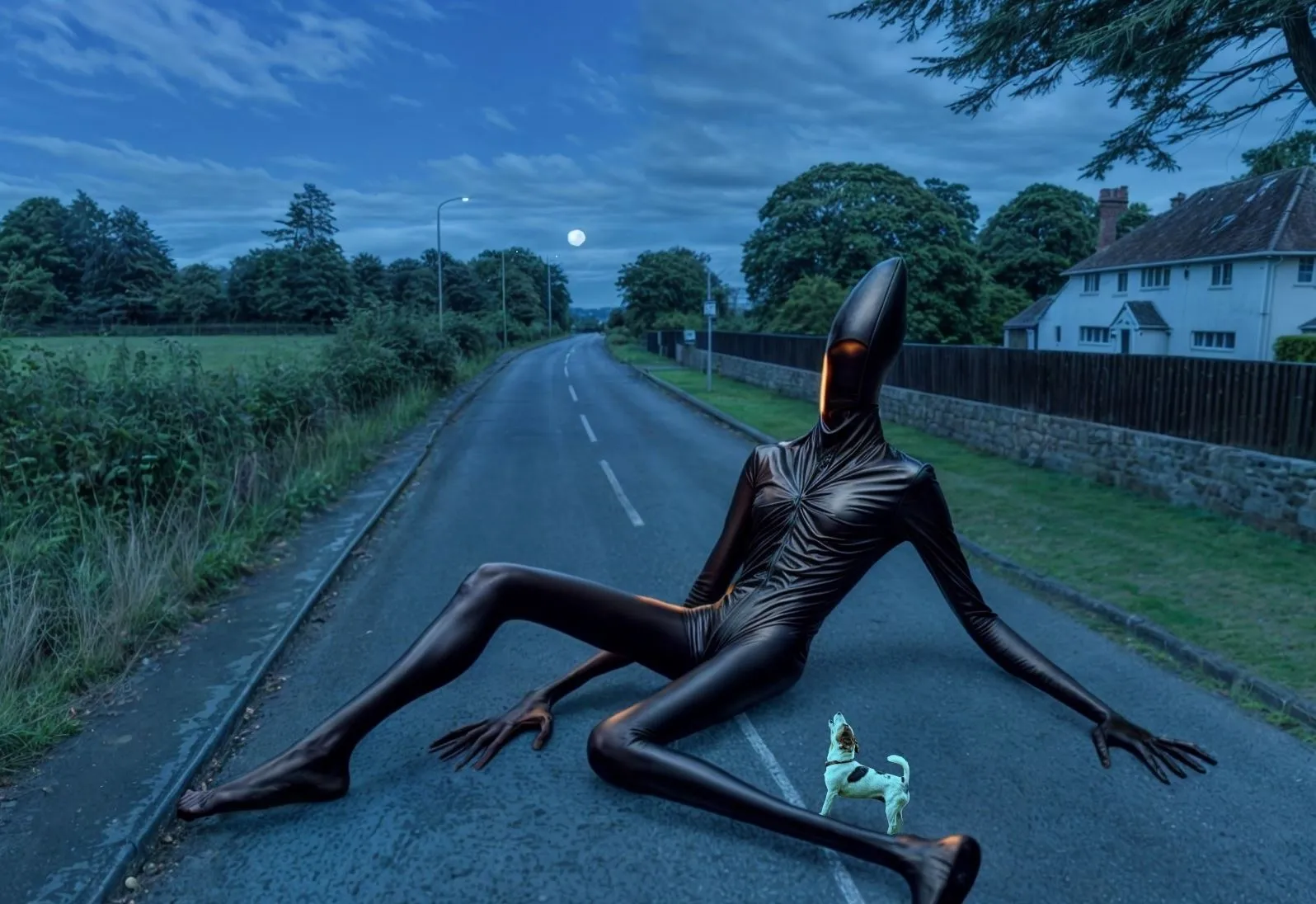 那个怪异的巨人停了下来,然后走进了斯托顿巷附近的一片田野。本吉追了上去,珍妮怀疑那是个外星人。