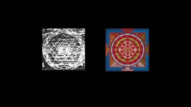 也有爱好者说,他们用Om的声波稍加调整,得到了这样一个图形,而这个图形,正是至尊坛城(Shri Yantra)的样子。