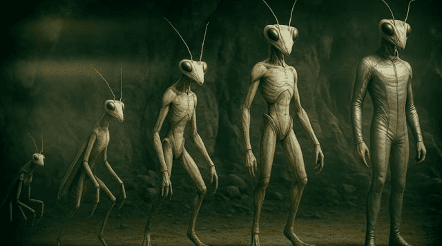 各种理论五花八门。有人认为这些生物是高级的类地昆虫外星人,可能是遗传学大师,负责监督涉及人类的杂交项目。另一些人则提出它们的起源更接近地球,或许它们是进化而来的陆地昆虫的秘密谱系,隐藏在时间的阴影中。