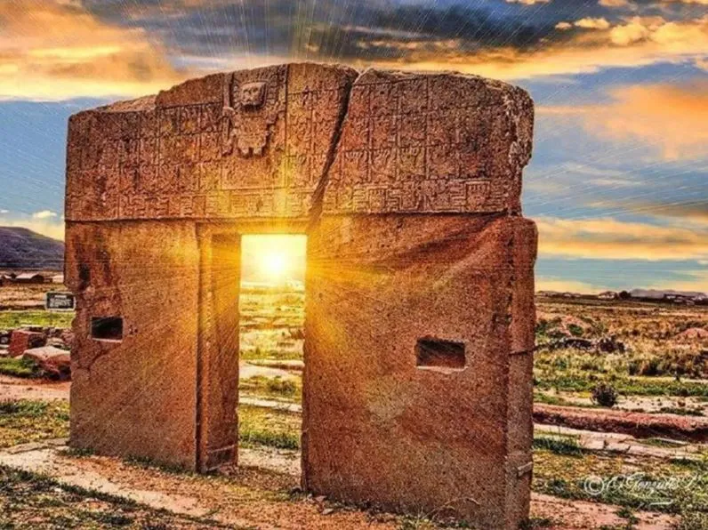 太阳门位于地球上最美丽的湖泊之一——的的喀喀湖附近,是由居住在现今玻利维亚的古代文明在数千年前于蒂亚瓦纳科考古遗址建造的。
