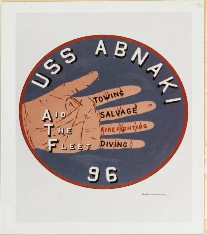 美国海军“阿布纳基”号驱逐舰——此次沉船救援行动的关键舰船——同年被涂上了一块奇特的舰徽。上面画着一只无形的手,与酋长对此次遭遇的描述诡异地相似。虽然官方记录显示这块舰徽的日期是1958年,但艺术家的签名却清晰地表明它创作于1962年。