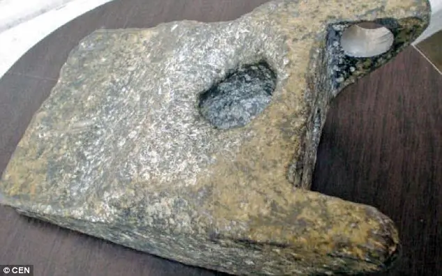 然而,第三块碎片却让研究人员大吃一惊。它看起来像是一件人造物品,由一种极轻的金属构成。研究人员当时怀疑那是一把斧头的末端。