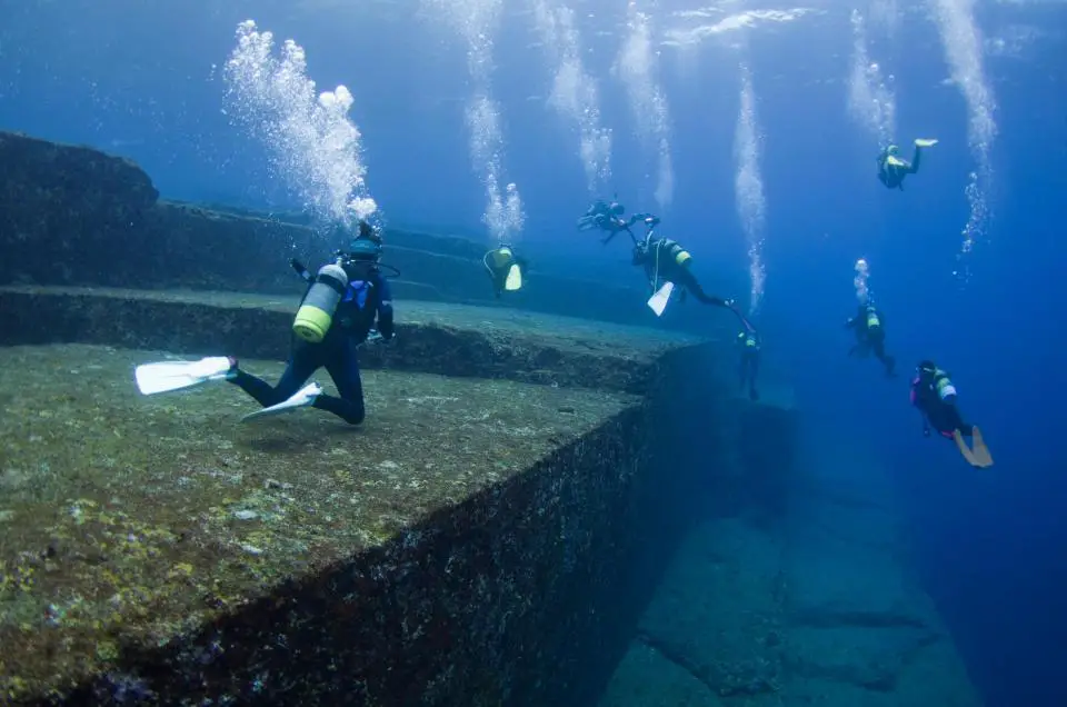 据许多潜水员和研究人员称,在水下建筑群中发现的最佳例子之一是楼梯状的平台和令人惊叹的平坦侧面以及极其尖锐的角,许多人认为这些是不可忽视的,并被认为是自然形成的。