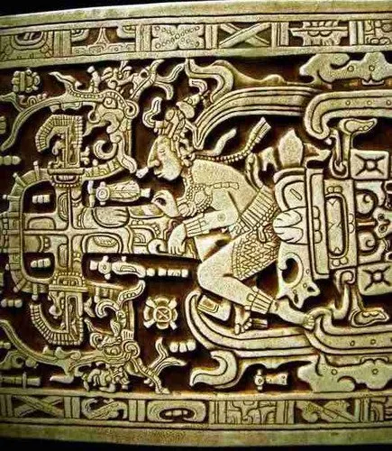 帕伦克著名的盖子描绘了帕卡尔国王身处复杂的宇宙场景之中。古代宇航员书籍推广了“火箭”的解读。现代玛雅艺术史将这幅雕刻解释为帕卡尔位于宇宙世界之树旁,周围环绕着一条丧葬蛇和一些天体符号——这幅图像象征着死亡、重生和统治,而非宇宙飞船。