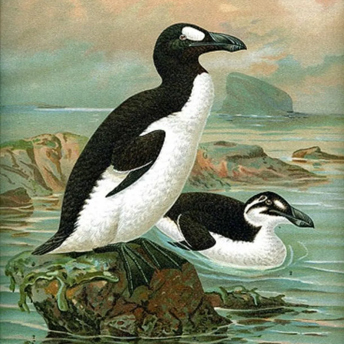 这些鸟生活在大西洋沿岸。它们长得非常可爱,以至于人们会为了炫耀而猎杀它们。当它们的数量开始迅速减少时,它们的绒毛和蛋也变得炙手可热。之后,人们为了牟利,开始大量猎杀它们。