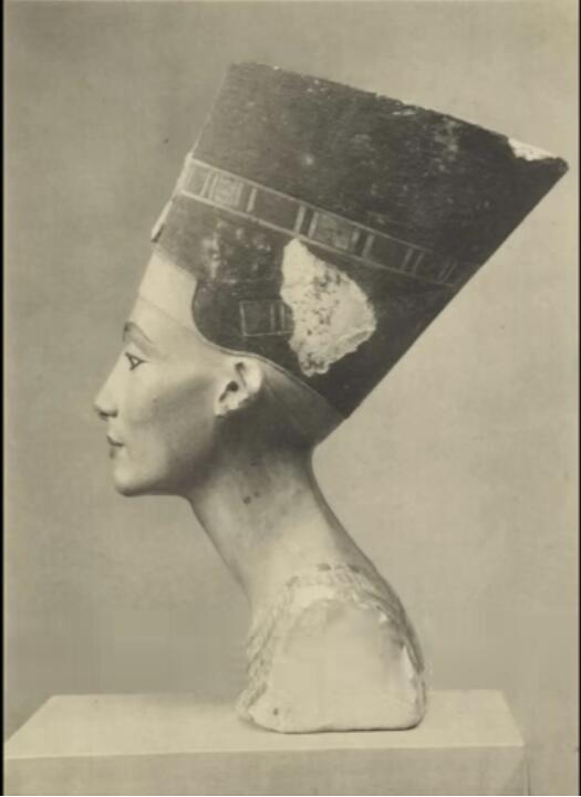 1921年12月6日,德国考古学家Ludwig Borchardt在埃及代号P47.2的一片荒漠中开始挖掘。突然,人群中出现了一阵骚动,Ludwig写道:在我们前面,大约膝盖高度的地方,首先露出了一条肤色的脖子,上面画着红色的丝带。我们十分谨慎的清理,最后色彩缤纷的半身像被抬了起来,我们找到了埃及最栩栩如生的艺术品。这座头像被称作“Nefertiti”那芙提提,意思是迎面而来的美人。